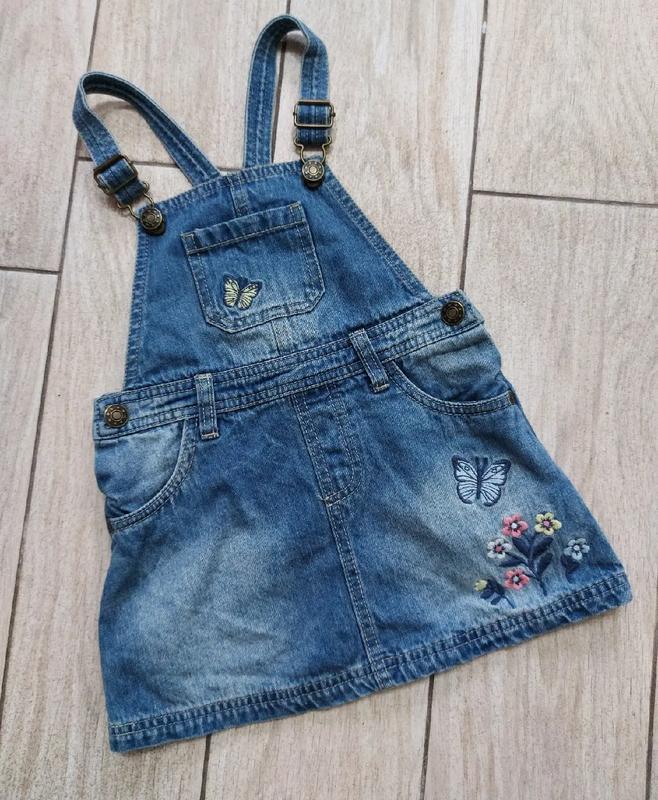 Красивый джинсовый сарафан с вышивкой!! 2-3 года.. длина 49 пояс 28 Состояние идеал!!
