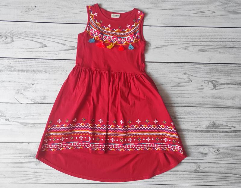 Сукня / сарафан LC Waikiki, р. 9-10/ 134-140 Не худи, носили из роста 128 см. Замеры: пог 32 см, пот 32 см, пос 62 см, длина спереди 67 см, ззаду 80 см. Платье в отличном состоянии, яркое, шикарно смотрится.