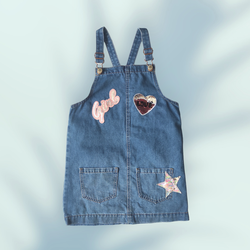 Джинсовый сарафан, р. 8-9 / 128-134 Носилы при росте 128-134 см, не худи. Замеры: пог 37 см, пот 39 см, пос 41 см, длина максимальная 68 см (регулируется бретельками).