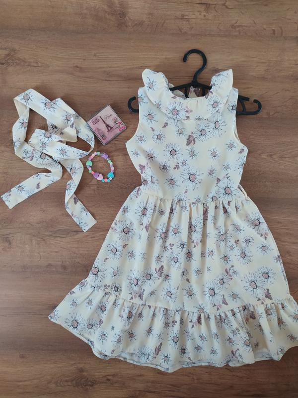 Легкий сарафан. На спине вырез, который можно завязать на бант. Есть пояс.
