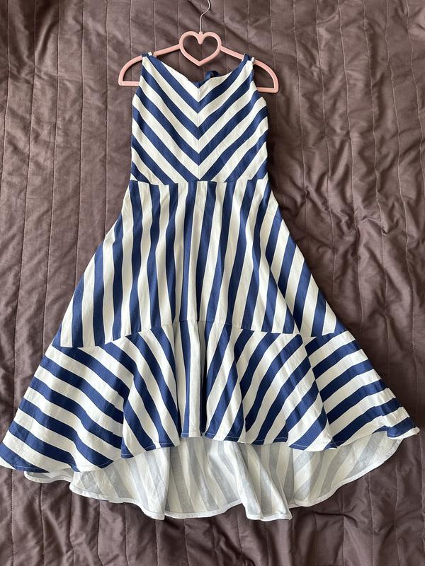 Шикарний сарафан. Длина по спинке 90 см, спереди 76. ПОТ 29 см. Шлейки регулюються. Сзади молния. На талии резиночка вшита. Тканина 100 бавовна. Было одето на пару мероприятий. Стан идеален.