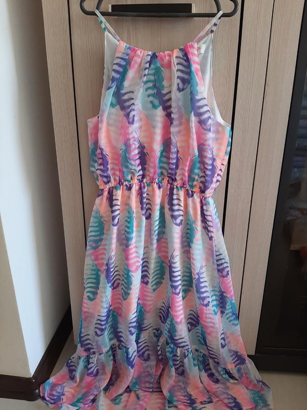 Шифоновмай на трикотажной подкладке сарафан.Перед идет короче,а зад удлиненный