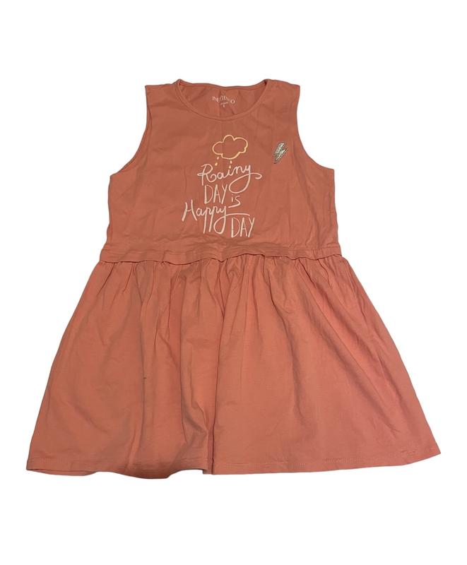 Сарафан на дівчинку з принтом та нашивкою «блискавка». Заміри: напівобхват грудей - 37, довжина - 63, довжина до пояса - 31. Колір: кораловий рожево-персиковий. Тканина: трикотаж. Недоліки: є дрібні плямки - дивіться на останніх двох фото. По переду - 2 дрібних й на підʼюбнику трохи більші які можна закрити нашивками. В іншому, стан тканини ідеальний.