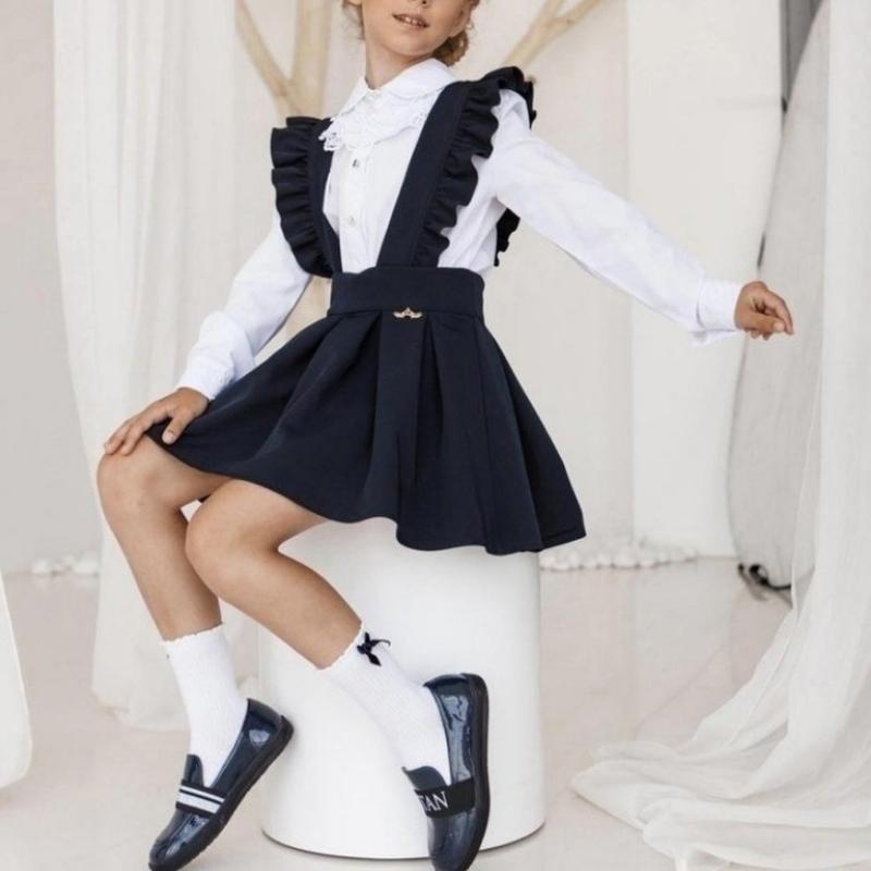 В наяности! Школьный сарафан Бретели на внутренних пуговицах (можно регулировать) В юбочке есть утяжка и потайная молния Цвет темно-синий. Тканина - костюмка. Бретели снимаются полностью. Брошь на талии - НЕТ! Замеры: 122 - длина - 32см, высота бретели - 31см, пояс- 28см. 128 - длина - 33см, высота бретели - 32см, пояс- 29см. 134- длина - 35см, высота бретели - 35см, пояс- 30см.