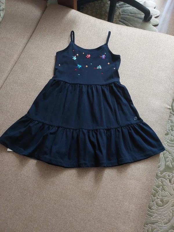 Чудовий сарафанчик з натуральної тканини. Новий,без бірки. На 7 років. Тоненький ,м який котон (хлопок). Позаду сарафанчик має оригінальний дизайн Довжина -58 см ПОГ-32см.