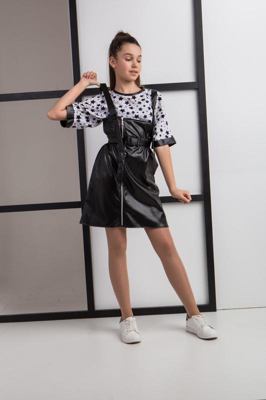 В наличии Хит сезона! Стильный сарафан с эко кожи для девочек. Пояс на резинке. Шлейки регулируются. Поясок в комплекте. Полномерный Размеры 140-164 Замеры Длина без бретелек/ПОБ 140 - 52/37 146 - 53/38 152 - 55/42 158 - 58/43 164 - 60/44 Размеры 140 нет 146 нет 152 1 шт