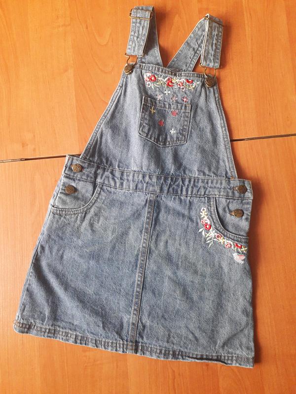 Джинсовый сарафан с вышивкой для девочки 5-6 лет.