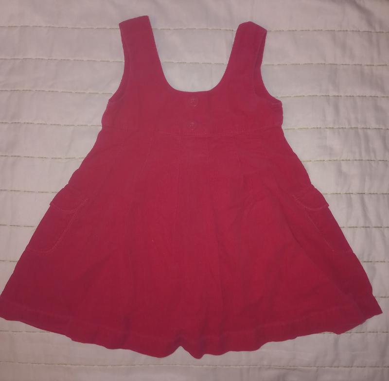Сарафан для девочки 1,5-2 года, Рост 82 см. Цвет - красный.Ткань - микровельвет.Есть два кармана. Красивый.