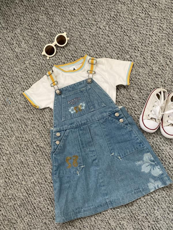Милый комплект для девочки: джинсовый сарафан с вышивкой + белая футболка с желтыми и голубыми акцентами.! Идеально для прогулок, садочка или фотосессии. Размер: 4 ( 104 рост) Состояние: Отличительный Материал: Хлопок + деним Цена: 280 грн Пиши в директ – ответь быстро!