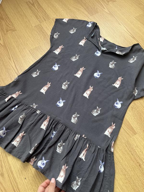 платье с принтом зайчики от фирмы Next, на девочку рост 146 см (11 лет). Это легкое и невесомое платье имеет свободный крой, обеспечивающий комфорт и свободу движений.