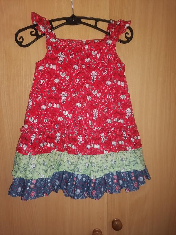 Детский сарафан Мarks & Spenser. На 3 года. ПОП 22 см, ПОГ 32 см, ПОТ 40 см, ПОБ 46 см, довжина 57 см. Матерiал котон.