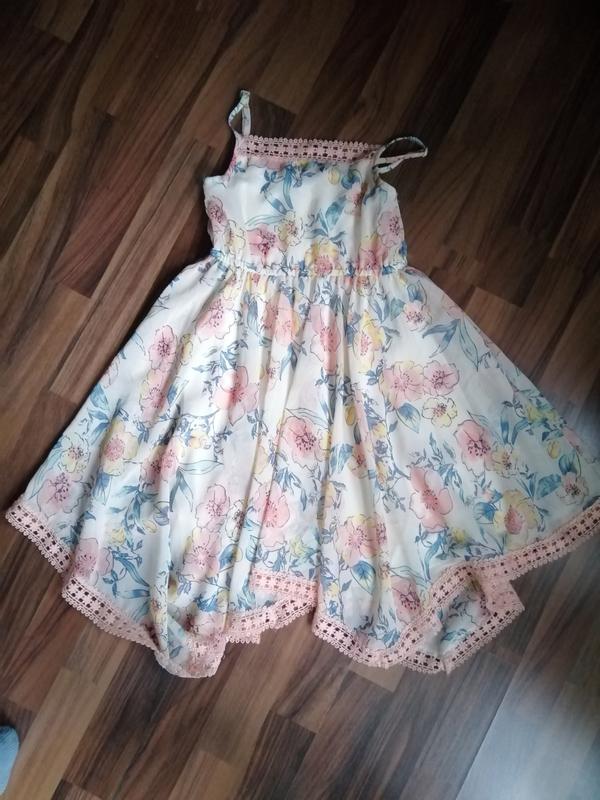 Красивый сарафан на девочку 6-7 лет, состояние очень красивое, есть подкладка, бретели регулируются, низ асимметричный