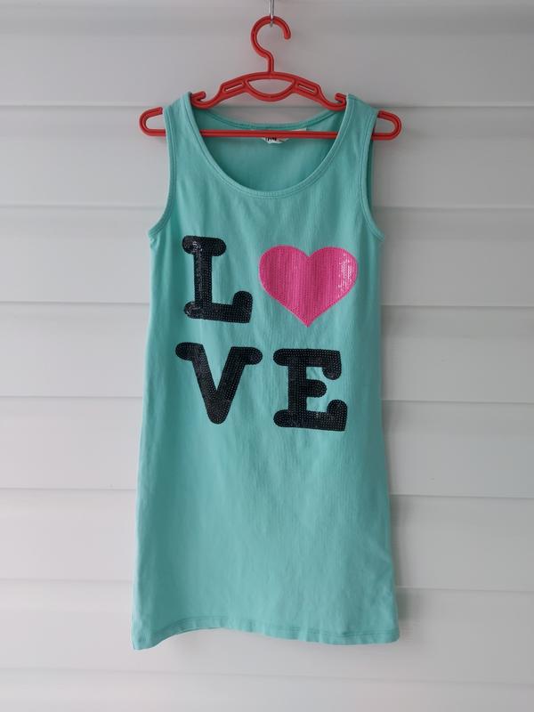 Летнее детское платье сарафан с принтом Love из пайеток h&m Возраст 8-10роков Склад: 96% котон, 4% еластан ПОГ - 30см Плечи - 25см Длина - 63см