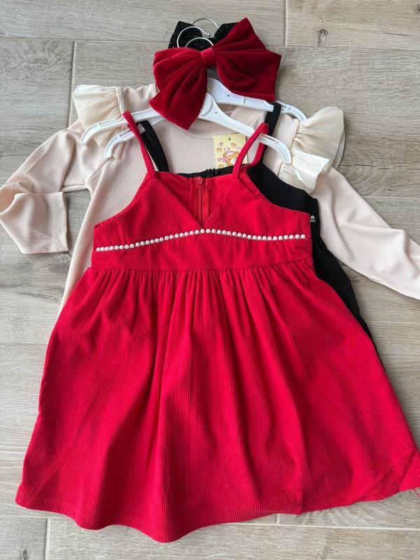 Комплект кофточка + сарафан. Качество отличное, очень приятный материал, сарафан на молнии сзади. Легко и удобно надевать. Обе позиции отдельные, поэтому можно сложить с ними множество образов. Размеры в наличии: Замер сарафана полностью с шляпами! Размер 90 – длина кофты 37см, ширина 30см, длина рукава от горловины 38см. Длина сарафана 53см, ширина 28см. Размер 100 – длина кофты 42см, ширина 31см, длина рукааа от горловины 41см. Длина сарафана 55см, ширина 29см. Размер 110 – длина кофты 43см, ширина 33см, длина рукава от горловины 42см. Длина сарафана 60см, ширина 31см. Размер 120 – длина кофты 45см, ширина 33см, длина рукава от горловины 46см. Длина сарафана 66см, ширина 33см. Размер 130 – длина кофты 49см, ширина 35см, длина рукава от горловины 50см. Длина сарафана 70см, ширина 34см. Размер 130 – длина кофты 52см, ширина 37см, длина рукава от горловины 52см. Длина сарафана 73см, ширина 35см.