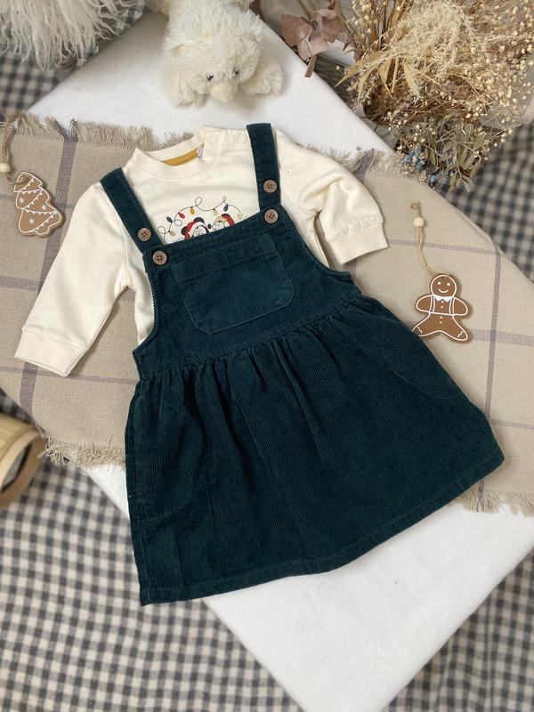 Вельветовый сарафанчик,темно зеленый,очень красивый цвет Регулируется пуговицами Имеет кармашки,универсальный,на любую погоду! На 1-2 года