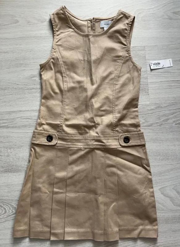 Нова сукня сарафан OldNavy (не встигли поносити). Отлично подходит для школы. Размер 8 slim, рост 135-140. На молнии. Длина от плеча- 71. Юбка плиссе. Склад: 98 бавовна, 2 - спандекс