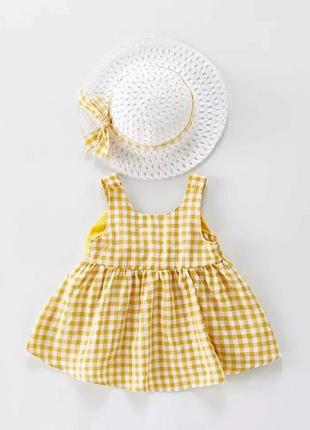🌹милий комплект🌹 хлопковый сарафан + шляпка бант сзади ЗАМІРИ ✅арт12 100р (3т) длина 45 ширина 30 НАЯВНОСТЬ 100р 2шт