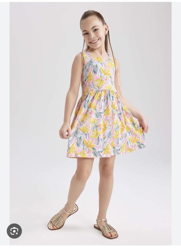 Коттоновая сукенка от бренда de facto, цветочный принт, натуральная ткань, размер 6-7 лет (116-122см), новая (без этикетки)