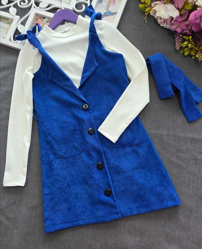 799грн размеры 128-158 Красивая новинка для девушек.☺️🥰 Костюм 2ка: лонгслив и вельветовый сарафанчик. Сарафанчик застегивается на пуговицы, дополнительно есть пояс. Брители на завязках. Есть кармашки. Тканина: мікровельвет + мустанг рубчик Кофтинка: ♥️р.128-Кофта: довж.39см/рукав 48см/ПОГ 29 см ♥️р.134-Кофта-:длин. 41см/рукав 50см/ПОГ 31см. ♥️р.140- Кофта-:длин 43см/ рукав 52см/ ПОГ 33см ♥️р.146- Кофта: длиж 45см/ рукав 53см/ ПОГ 35см ♥️р.152- Кофта: длиж 47см/ рукав 55см/ ПОГ 36см ❤️р.158(164см)- Кофта: длиж 49см/ рукав 58см/ ПОГ 38см Сарафан: длина по центру спинке!!! ❤️128р- длина 55см, ПОГ 35см ❤️134р- длина 58см, ПОГ 36см ❤️140р- длина 61см, ПОГ 38см ❤️146р- длина 65см, ПОГ 40см ❤️152р- длина 68см, ПОГ 42см ❤️158р(164см)- длина 71см, ПОГ 44см