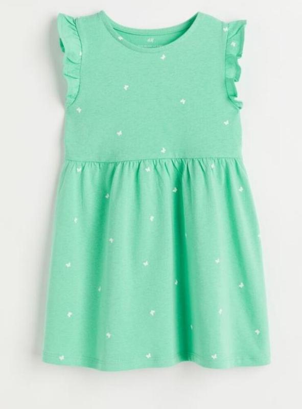 Детское платье платья на девочку. Платье из мягкого трикотажа из органического хлопка. Рукава с оборками и отрезная талия, с декоративным сборкой. H&M 2-4 года - р.98/104: длина 52, ПОГ 30