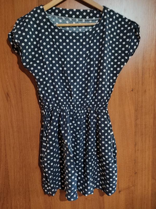 cарафан короткий, красивый принт в горох, цвет синий стан б/в размер S