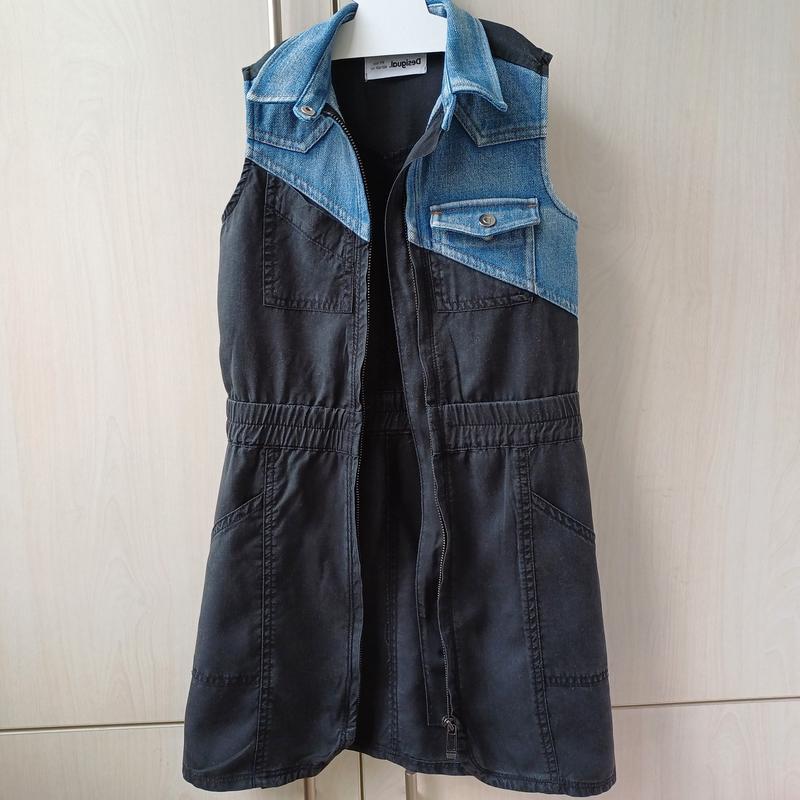 Сарафан очень стёльный, можно носить и на блузке и футболку, комбинированный из джинсовой ткани сверху, и легкого лиоцелла книзу. состояние идеальное. размеры: пог 33см,длина 70смм, пот 33см, поб 37