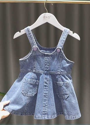 Джинсовый сарафан. Плотный джинс. Замер с бретелями. Супер качество. Рекомендую ! р.90 - длж. 47см., шир. 28см.(2шт) р.100 - длж. 52см., шир. 30см.(2шт) р.110 - длж. 54см., шир. 32см.(2шт) р.120 - длж. 58см., шир. 34см.(2шт) р.130 - длж. 62см., шир. 35см.(2шт)