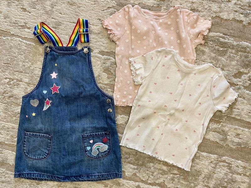 Продам дуже гарний яскравий сарафан на дівчинку 5-6 років, стан ідеальний, разом два топа. Заміри на фото