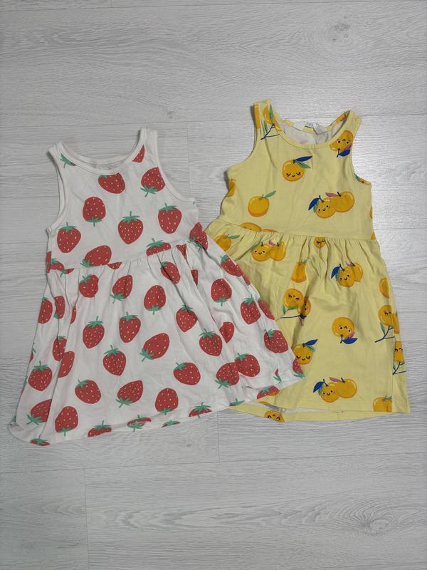 Стан вживаний, але добрий, є невеличкий нюанс на жовтому сарафані, дивіться фото Ціна за обидва сарафани Розмір 98-104 Довжина 50 Ширина від пахви до пахви 26 Ширина у талії 27