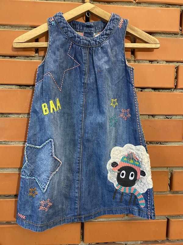 Веселый сарафан из тонкого джинса. Длина 54 см, ПОГ 28 см. В наличии 2 штуки.