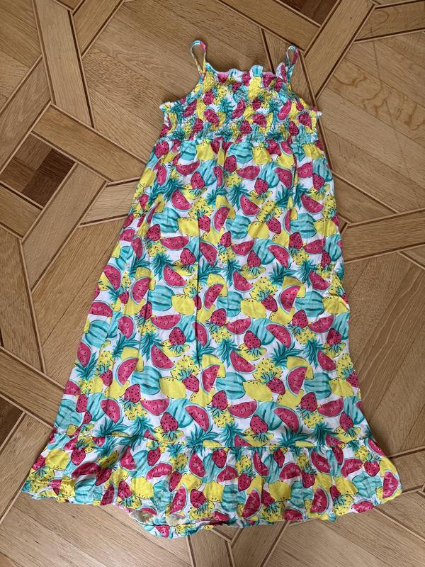 Легкий летний сарафан из вискозы. На лето - находка! Свободного кроя, не прилипает. Бретели подшиты, можно нить распустить и будут длиннее. Носилы несколько раз, поэтому состояние идеально. ог 29+ тянется до 44, длина сбоку к низу от ог 71 см