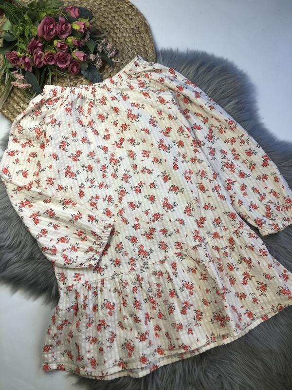 ⬇️ Опис ⬇️ ‼️ Мінімальна сума замовлення 100 грн. Якщо Ви бажаєте придбати більше однієї речі, будь-ласка, оформлюйте замовлення через кнопку «Додати до кошика» ✅ Літня сукня з оборкою, 7-8 років, в ідеальному стані. Тканина 100% бавовна, жатка. По вирізу на резинці, можна носити з відкритими плечами і без. Довжина від плеча 63 см. Ширина під ручками 40 см. Рукав від горловини 47,5 см.