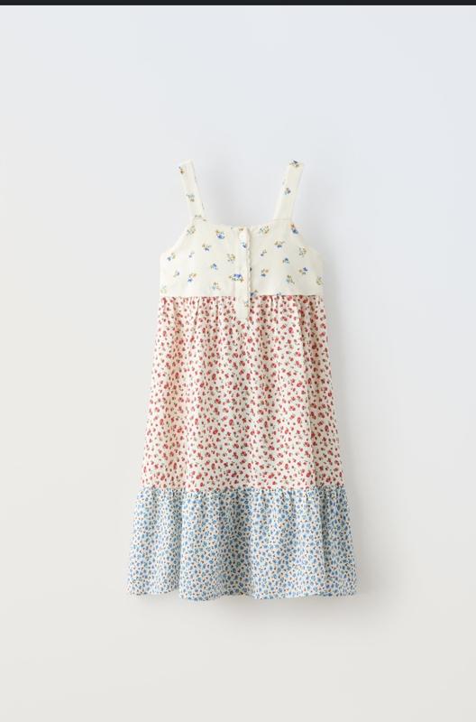 Яскравий комбінований сарафан фірми Zara на дівчинку 12-14 р.У складі є вміст льону.Довжина 93 см, ширина в грудях 35 см