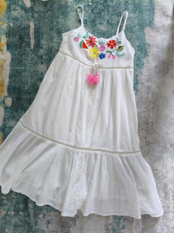 Нарядное платье, из Европы.На праздники длина спереди 66 сзади -61 ПОГ -30-35 резинка ПОБ -50 Спереди на груди вышивка.Нежная ткань хлопок жатка, подкладка тоненьеная Сделано в Индии Смотрите другие Мои объявления.