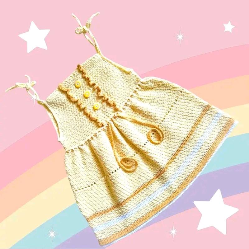 Сарафан для маленькой девочки, на 1 -1.5 года. Пряжа хлопок с льном. Замеры смотрите на фото, длина завязок 22 см. Сделано с любовью Доставка новой почтой.