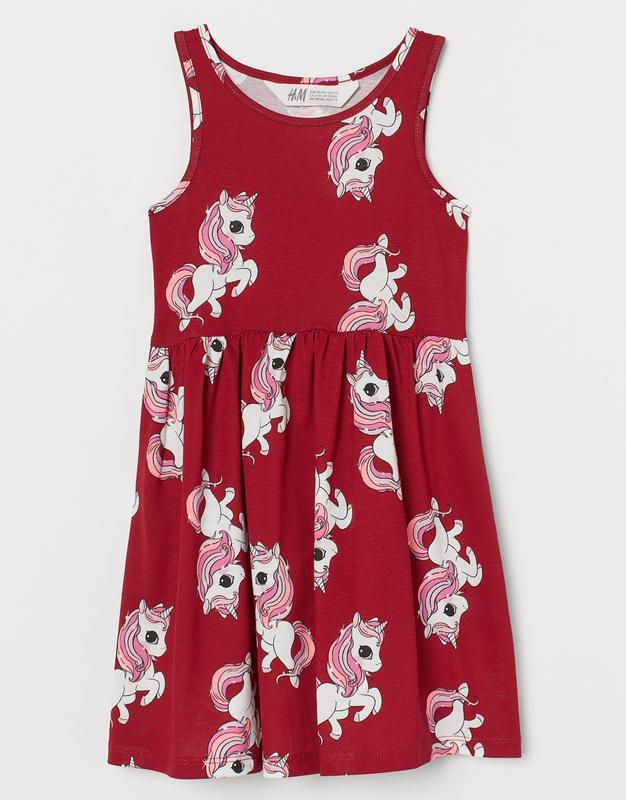 Детское платье сарафан на девочку. Платье без рукавов из мягкого хлопкового трикотажа с принтом. Отрезное по сборке на талии и расклешенной юбкой. H&M 1,5-2 года - р.92: длина 49, ПОГ 25