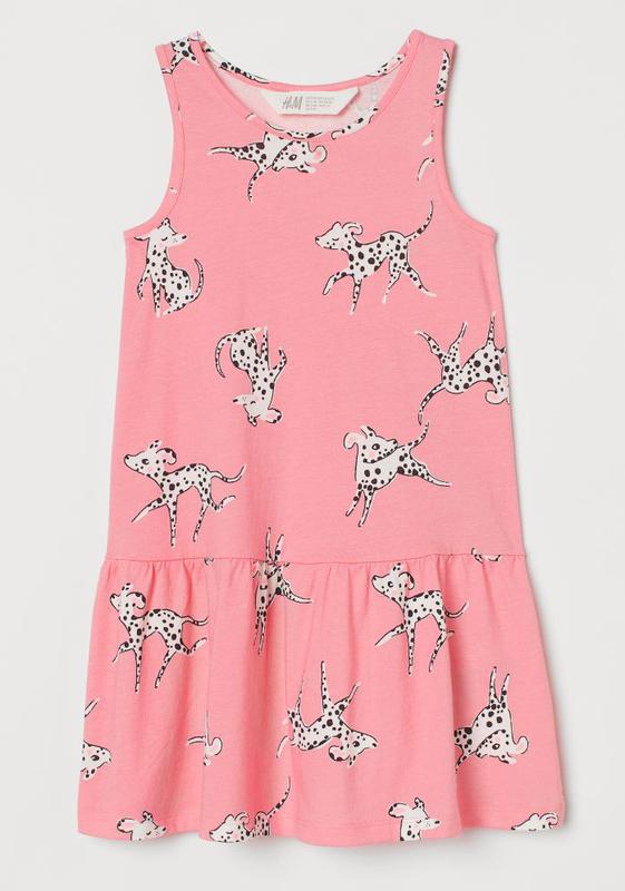 Детское платье без рукавов (сарафан) из мягкого хлопкового трикотажа с принтом. Отрезное по сборке на талии, расклешенная юбка. H&M 4-6 лет - р.110/116: длина 62, ПОГ 31