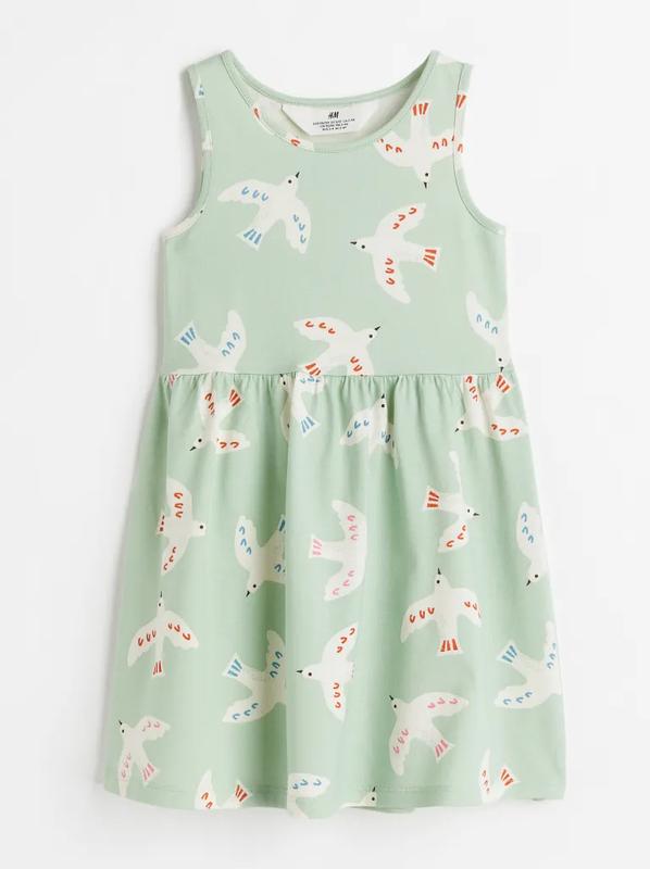 Детское платье на девочку. Платье без рукавов из мягкого хлопкового трикотажа с принтом. Отрезное по сборке на талии и расклешенной юбкой. H&M 8-10 лет - р.134/140: длина 74, ПОГ 34