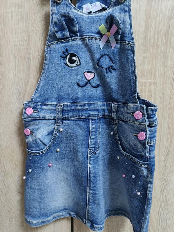 Сарафан джинсовый, красивый с котиком, длина регулируется.