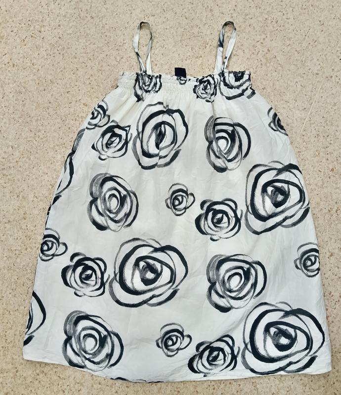 Модный сарафан Gap Kids для девочки 10-11 лет (145 см). Цвет айвори с принтом из цветков роз, имеет два слоя. Верхний хлопок 70 хлопок, 30 шелк, нижняя подкладка - полиэстр. Сверху бретельки с резинками на груди. Длина с бретелями 78 см, без 64 см. Резинка 31 см собрана, 52 см - растягивается. Ширина у бежрах та по низу - 63 см. Красивый нарядный сарафанчик. Состояние нового, отсутствуют бирки.
