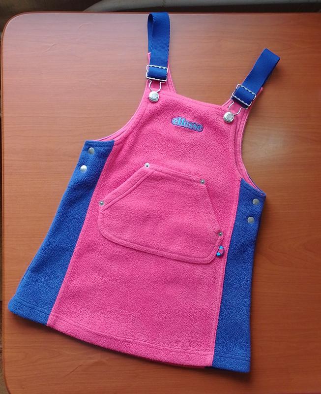 Сарафан пару раз вдет, быстро переросли. Ткань мягкий флис. Спереди карман де можно обе ручки согреть. Длина регулируется за счет лямок. В садик очень удобный. По бирке - возраст 4-5 лет, рост 104-110 см. Замеры: - длина с лямками мин/ макс - 56 см / 60 см - полуобъем на уровне переднего кармана 34 см ... Смотрите другие объёмы, есть одежда и обувь для девочек