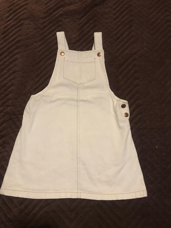 Сарафан для дівчинки , джинсовий на закльопках. 6-7 років . Довжина виробу 58 см. Півобхват грудей 34 см. З недоліків ззаду в низу вимащений, не знаю чи відстірається. Ледь помітно.