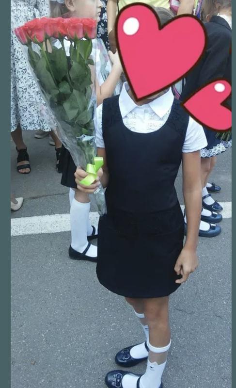 Сарафан школьный. Рост 128. Длина по спинке 57 см, ширина под руками 30 см. В талии резинка, сзади змейка. Очень красиво смотрится на ребенке. Состояние нового.