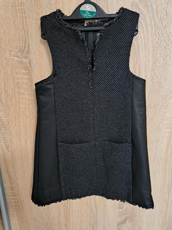 Очень красивый сарафан Zara на 4-5 лет, но лучше 3-4 лет. Красивая фактурная ткань, теплый. Имеет подкладу, 2 кармана впереди, сзади потайная молния. Вставки из кожзама по бокам. Замеры: Длина 53 см Ног 30 см