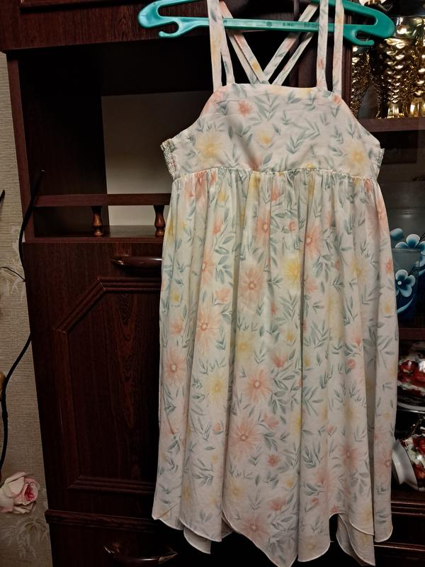 Красивый сарафанчик на девочку. Возраст 4-5 лет. Греческий пошив. Замеры: брительки 29 см, подмышки 30 см сзади резиночка, длина 63 см по длинному и 55 по короткому замеру. Состояние отличное, дефектов нет, пятен нет, носится отлично, воздушное и лёгенькое. Пересылаю Новой и Укрпочтой.