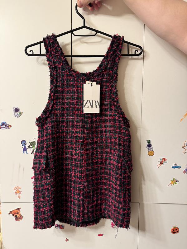 Сарфан Zara новый, с бирками. Купили через предшественника в официальном магазине. Отлично подойдет как для рождественской фотосессии так и для носки в школу. Очень стильный и качественный. Забыли о нем, и ребенок просто вырос. Отдаем дешевле, чем приобретали (на ценнике видна изначальная цена, и распродажную (12,99 евро).. Замеры: Общая длина - 66 см Половина обхвата талии - 35 см