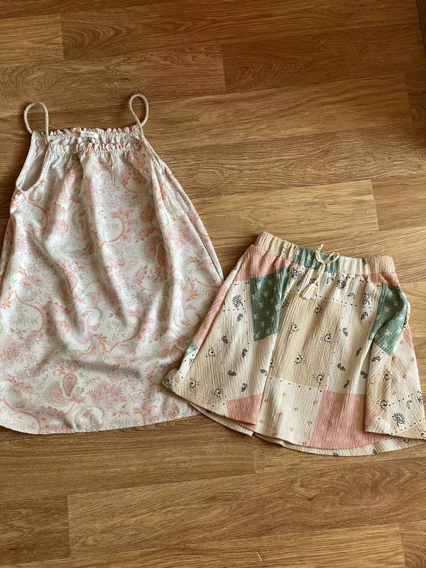 Сарафан next ,розмір вказаний на фото ,але носився на розмір 134,дуже легенький і комфортний .По спідниці заміри на фото