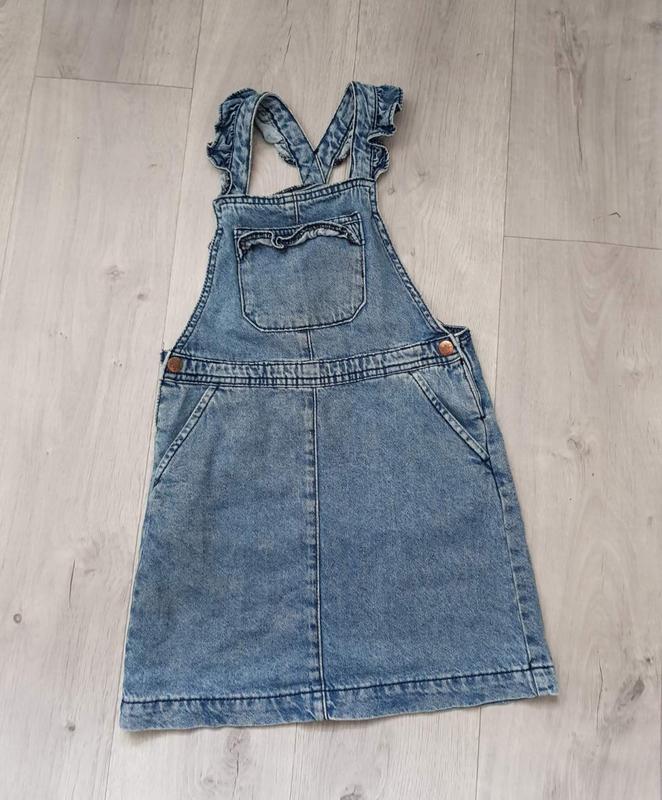 Стильный сарафанчик на 5-6 лет в отличном состоянии. Сбоку есть кармашки. Длина 61 см (можно сделать дольше на 2 см, на лямках есть дополнительные кнопки)
