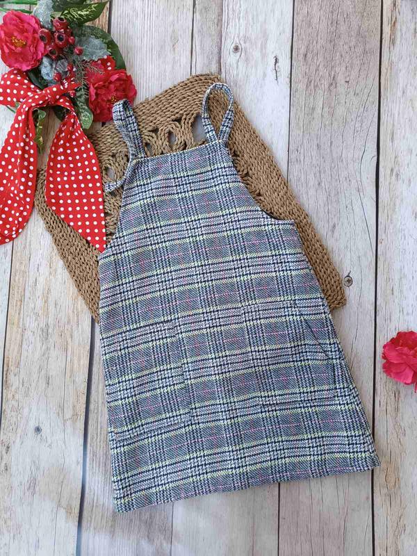 92💥красивый теплый сарафан в клетку, состояние идеальное, есть подкладка, бретели регулируются 📏11/12 лет, длина мах 81, пог 39