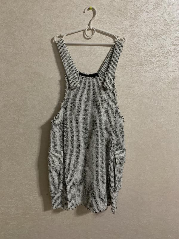Стан ідеальний, можна сказати новий . Дуже стильно сидить на дитині, не а підкладці з натуральної тканини . Два кармани . Довжина від верху шлейки до низу 80 см , ширина 45 см